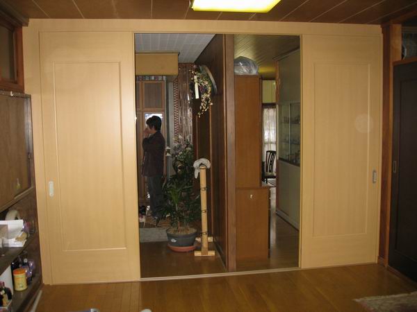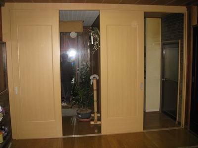 敷居を埋め込み段差を最小に押さえて4枚引き戸を設置致しました商品