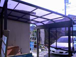 雨よけ日よけのスペースが1日で完成しました。本当に幸せなワンちゃんです。